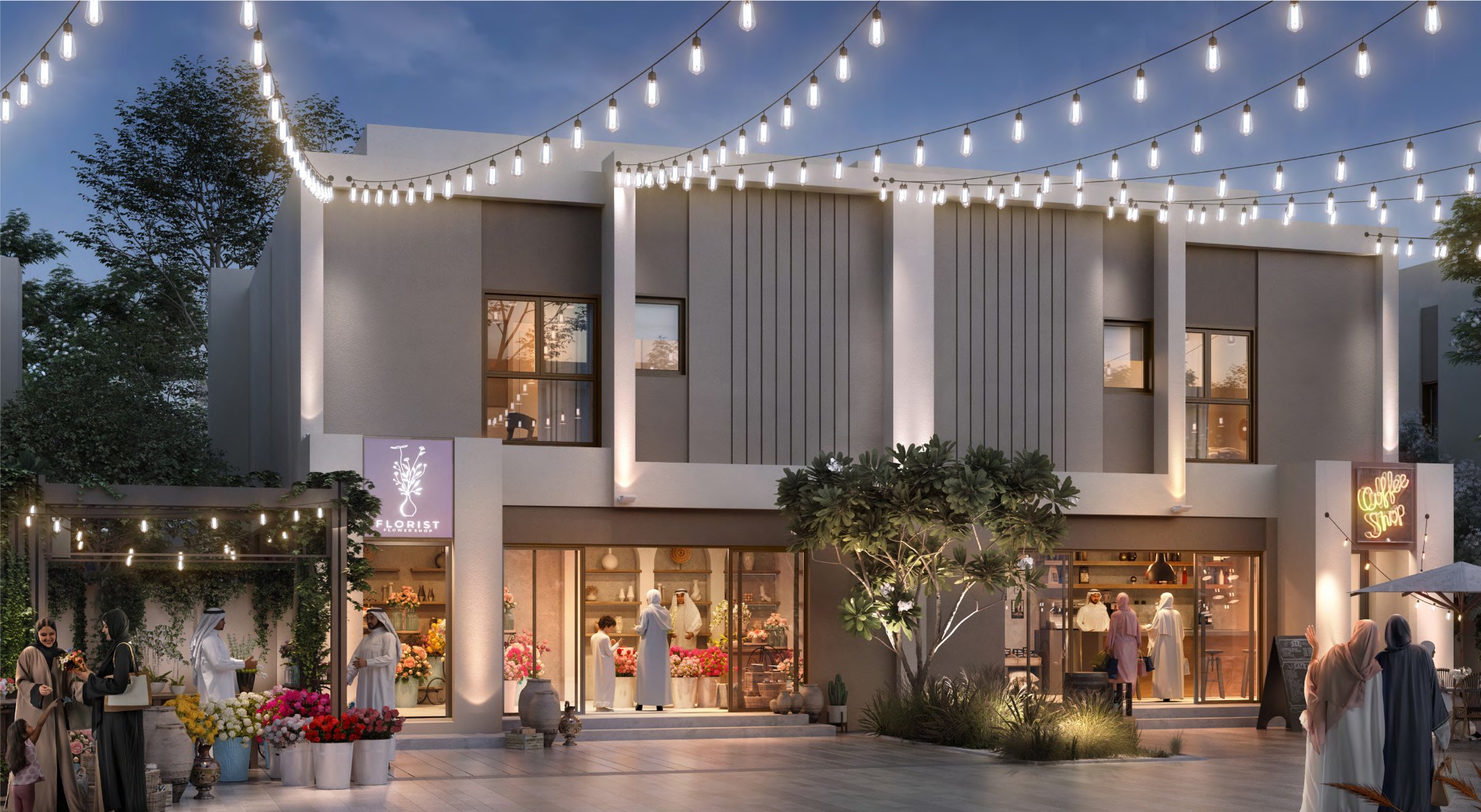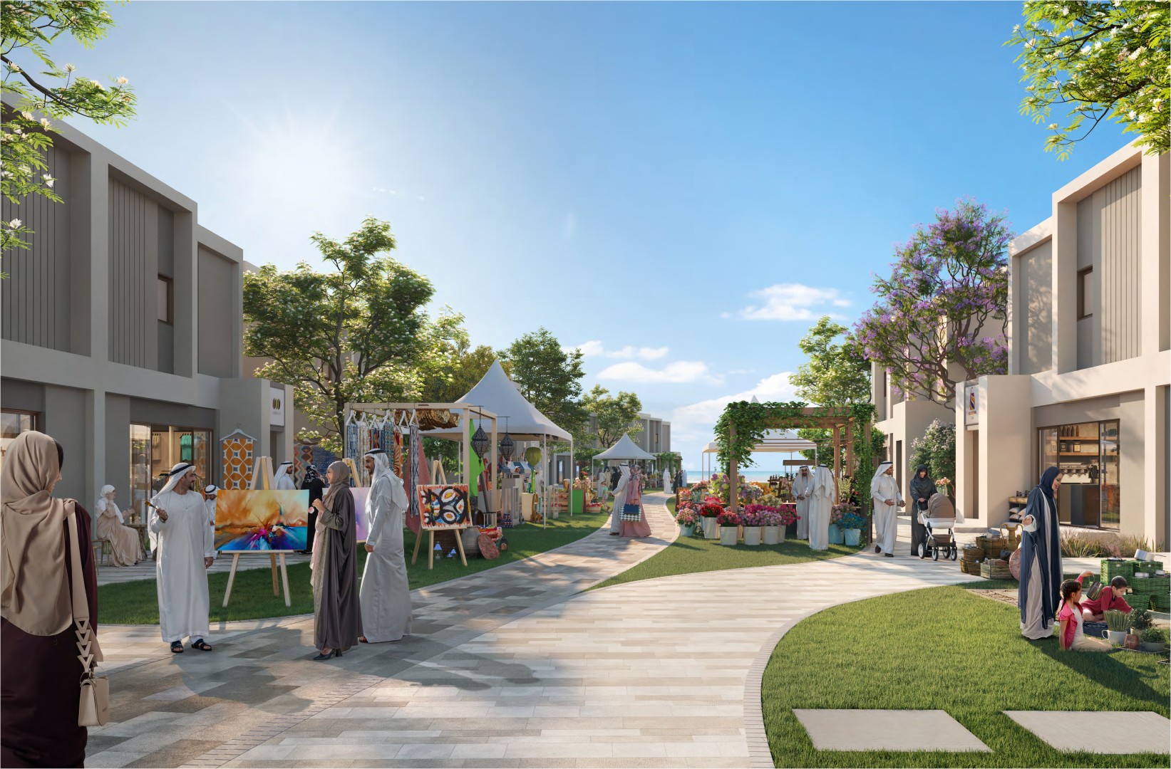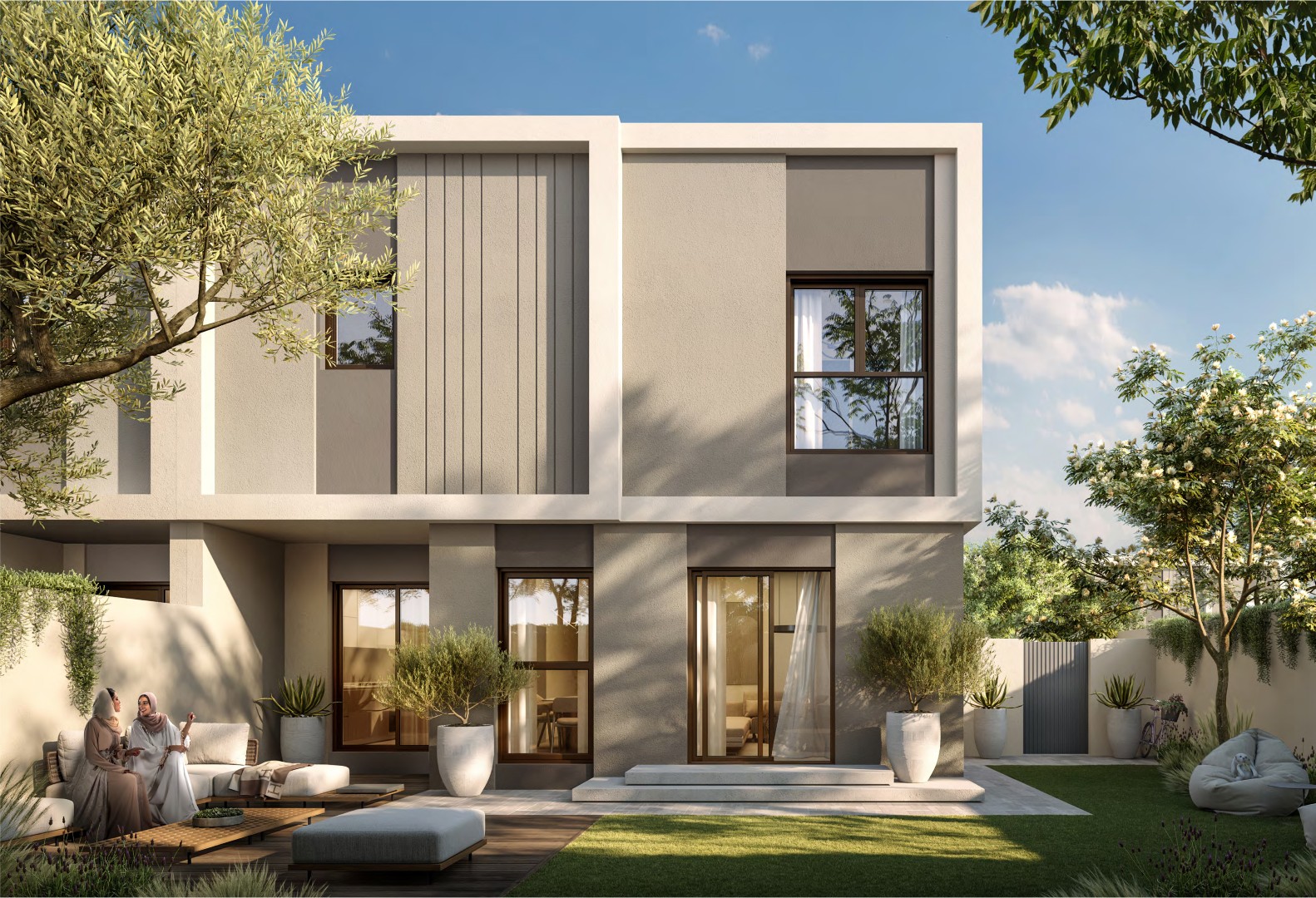 تشتمل الهندسة المعمارية الحديثة على شرفات مظللة وأسقف عالية الانعكاس للحفاظ على برودة المنازل. وفي الداخل، ينصب التركيز على الإضاءة الطبيعية والتخزين الواسع والتصاميم الفعالة، مع مطابخ عائلية مفتوحة على حدائق خاصة. يمكن للمشترين تخصيص منازلهم من خلال خيارات الدار العقارية.