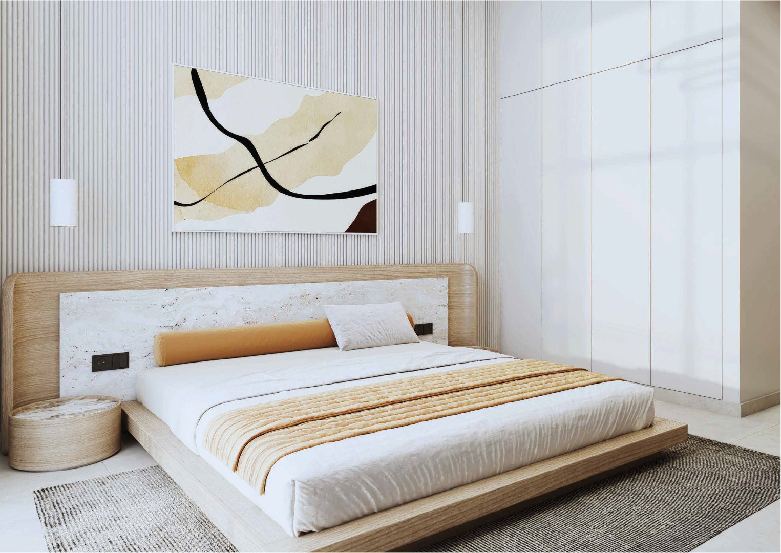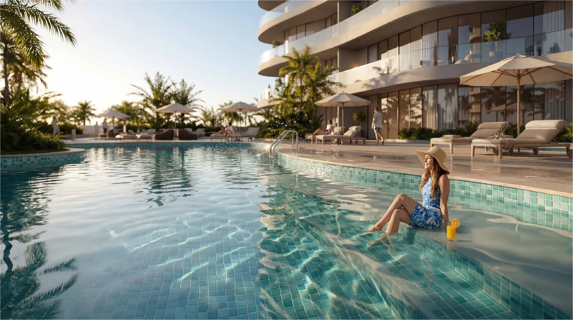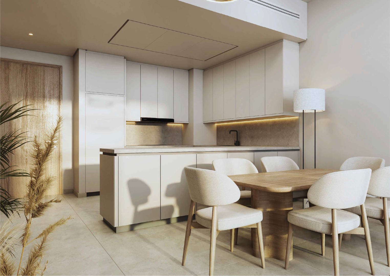 The architecture follows a continuous curved line that mirrors the canal, shaping balconies and terraces while keeping the tower’s profile light and composed. Rising to 45 floors, the design focuses on flow and movement rather than heavy statements. Inside, layouts range from efficient studios to larger duplexes and sky villas. Living and dining areas are open and well-proportioned, with generous glazing and clear private zones. Selected residences add terraces, double-height living, or private pools, while maintaining practical planning across all unit types.