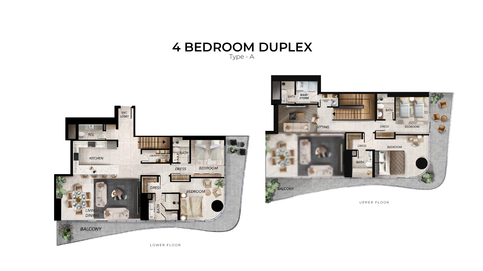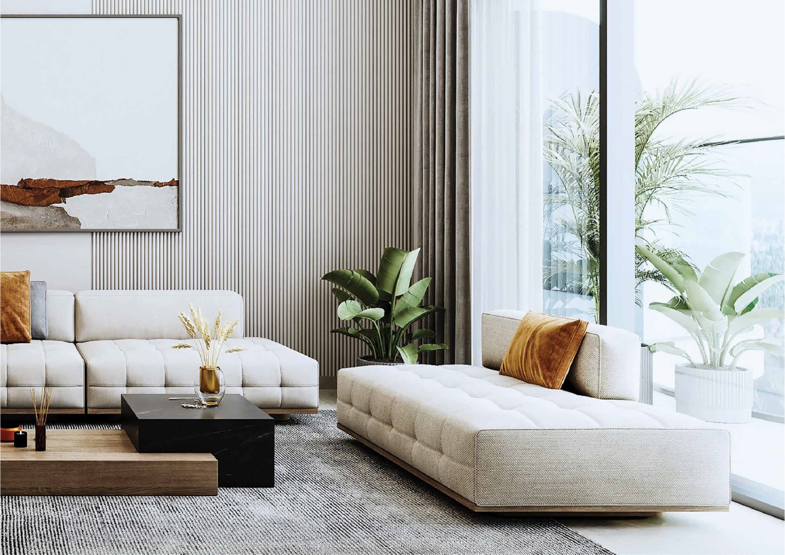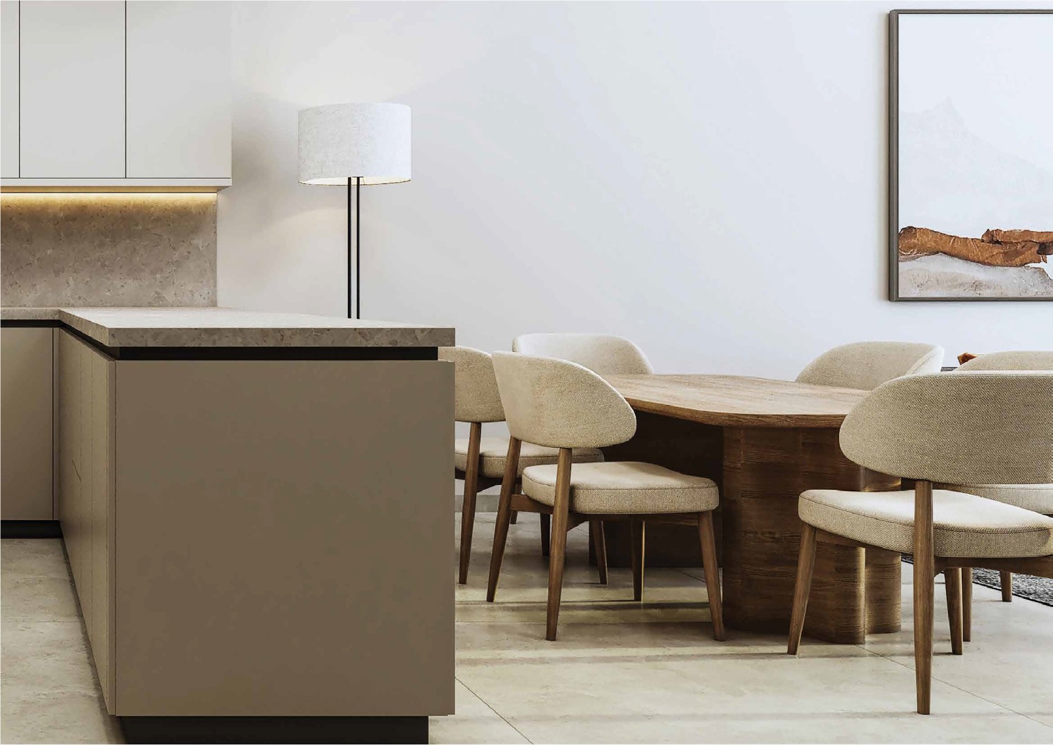 The architecture follows a continuous curved line that mirrors the canal, shaping balconies and terraces while keeping the tower’s profile light and composed. Rising to 45 floors, the design focuses on flow and movement rather than heavy statements. Inside, layouts range from efficient studios to larger duplexes and sky villas. Living and dining areas are open and well-proportioned, with generous glazing and clear private zones. Selected residences add terraces, double-height living, or private pools, while maintaining practical planning across all unit types.
