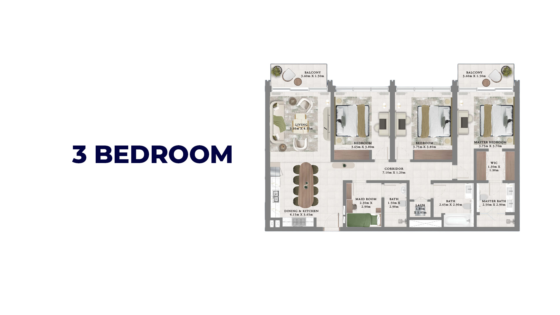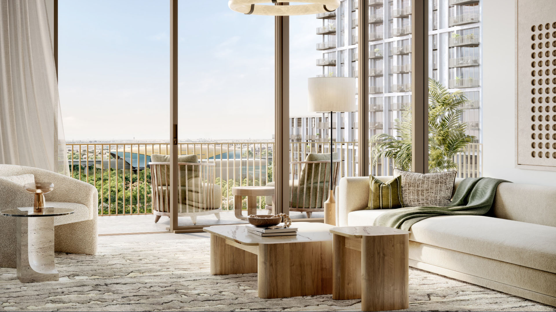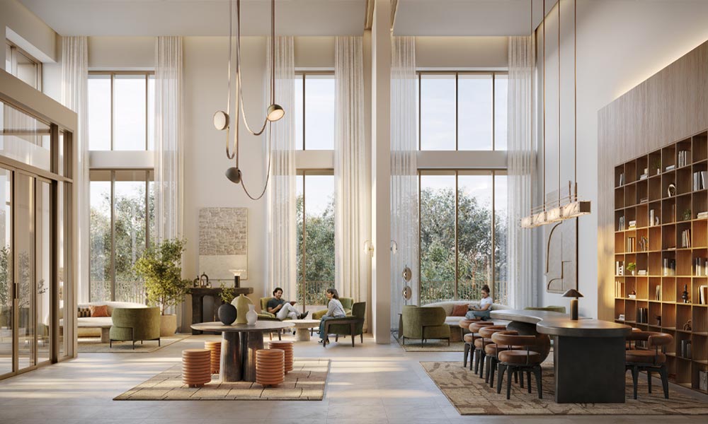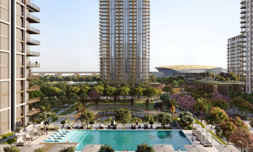The residences include well-proportioned 1, 2, and 3-bedroom apartments designed for contemporary city living. Large windows and private balconies open to panoramic views of Dubai Creek Canal, lush parklands, and the surrounding skyline, creating homes that feel open, light, and visually connected to their surroundings. Interior layouts prioritise comfort, flow, and functionality, complemented by modern materials inspired by Dubai’s evolving architectural identity.