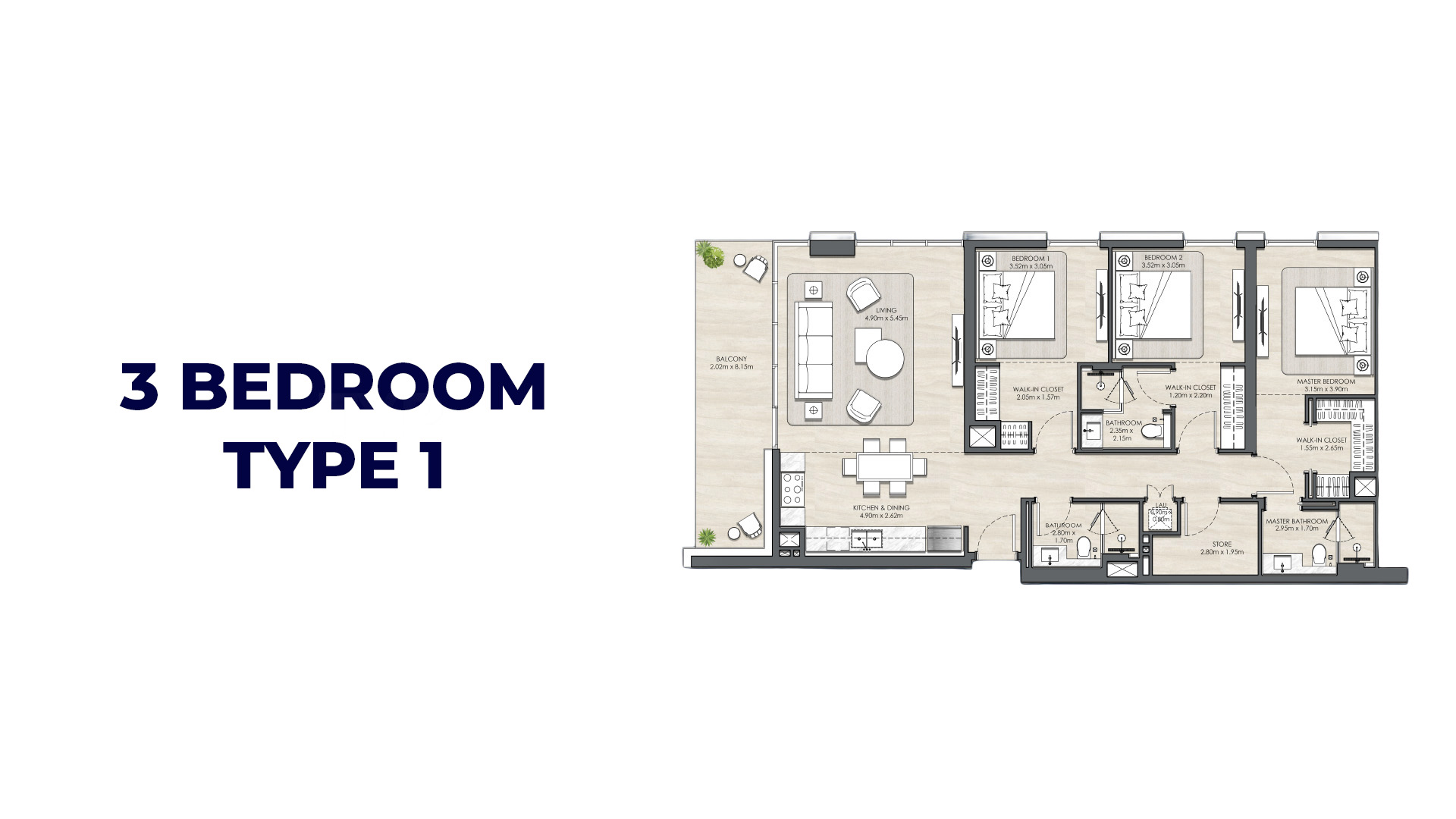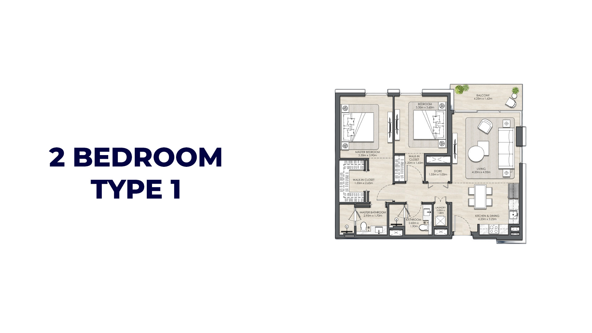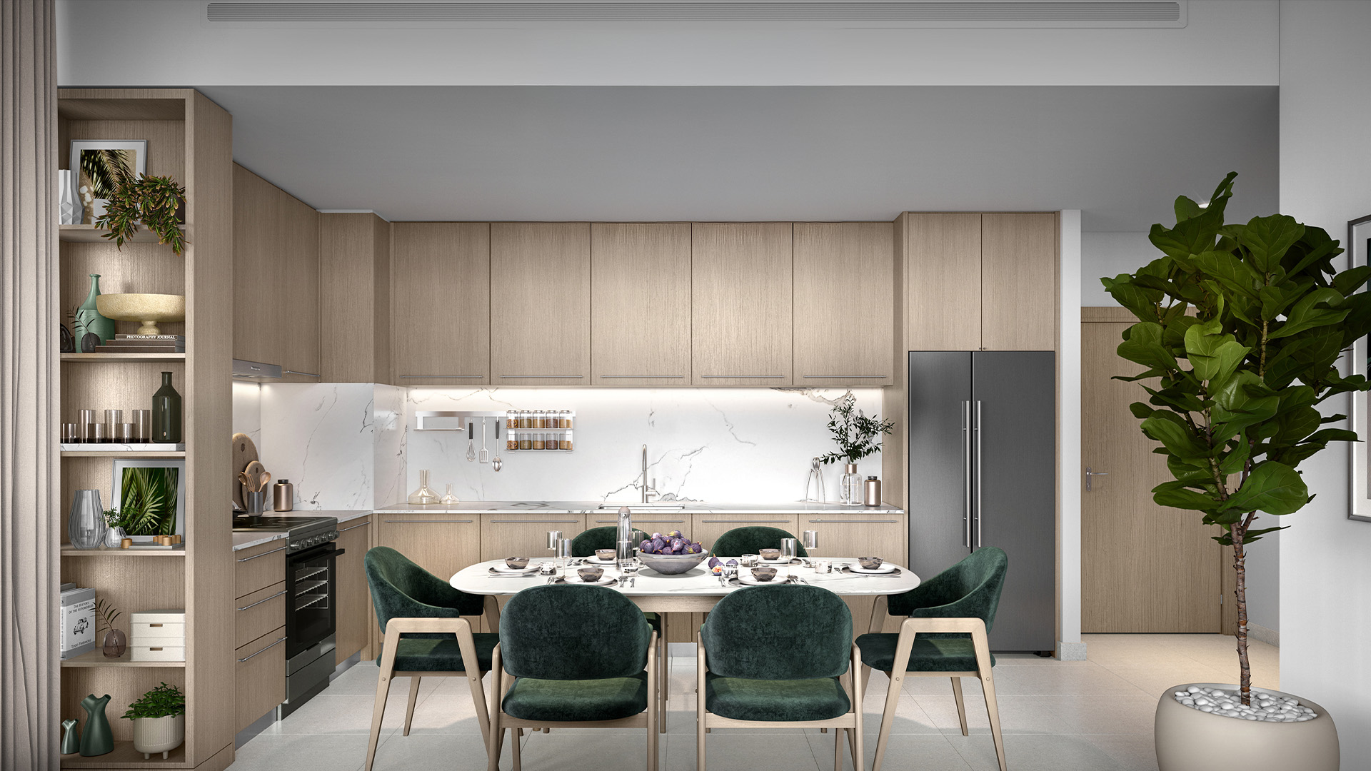 The residences include 1, 2, and 3-bedroom apartments, along with a limited selection of 3-bedroom townhouses and duplexes. Homes are characterised by expansive glazing, spacious balconies, and open-plan interiors finished in soft, neutral tones. These design elements maximise natural light and create living spaces that feel elegant, functional, and enduring.