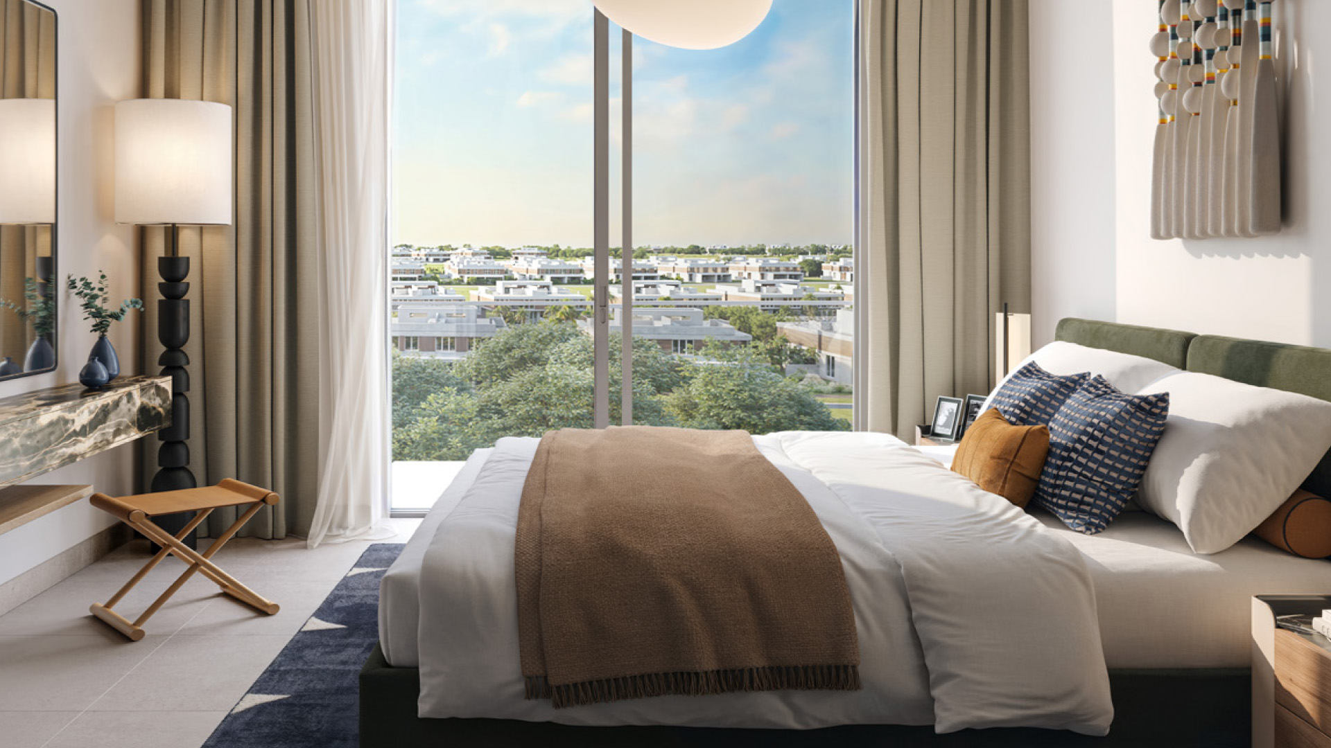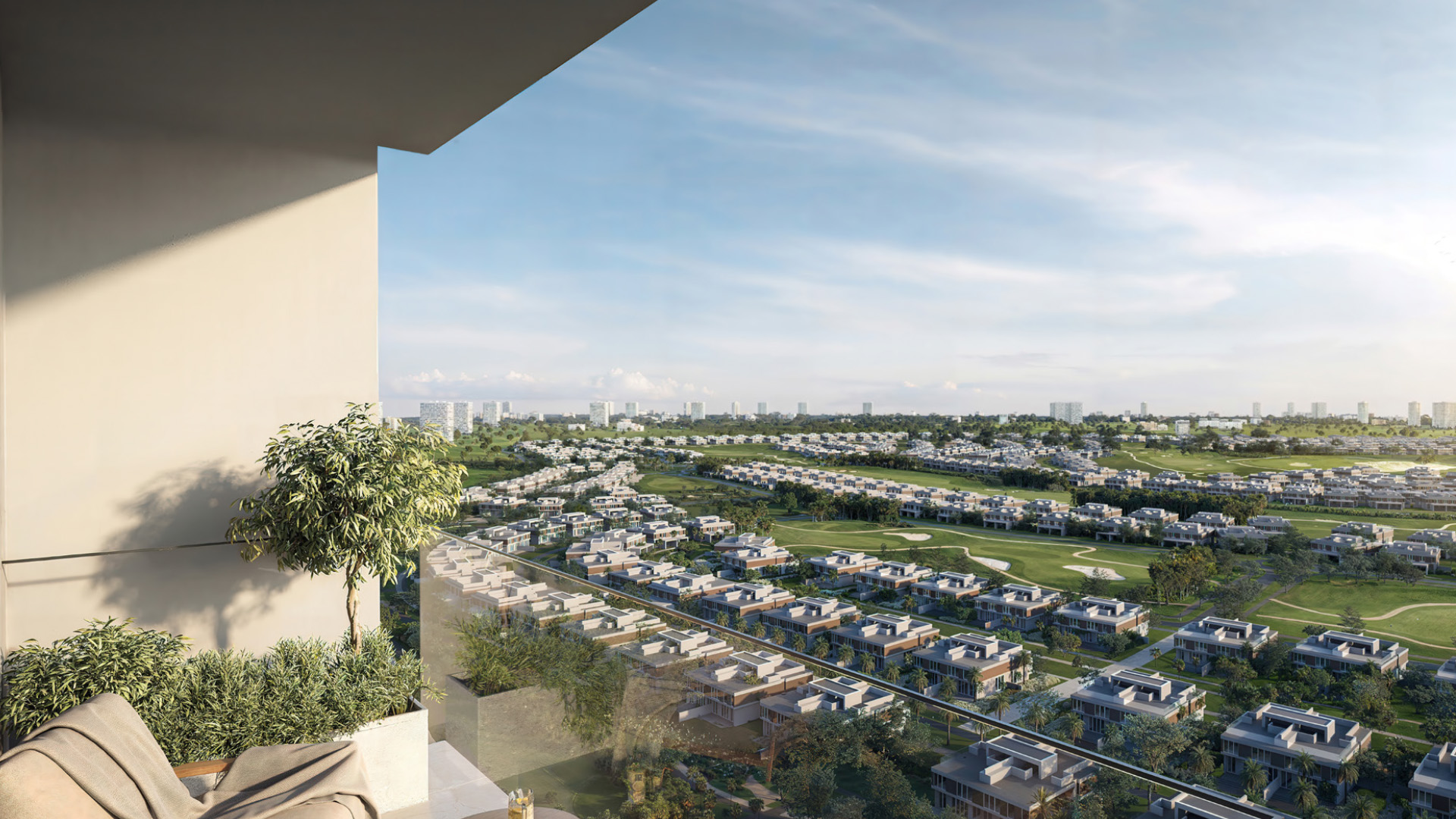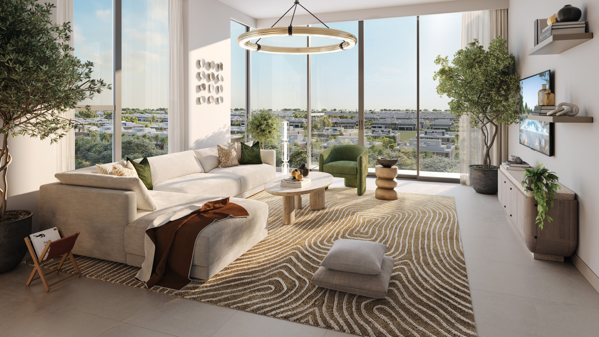 The project features a 20-storey contemporary tower offering a refined selection of 1, 2, and 3-bedroom apartments. Each home is carefully planned to maximise natural light, comfort, and functionality, with neutral-toned finishes chosen for both aesthetic quality and long-term durability. Expansive windows frame uninterrupted golf course views, creating interiors that feel open, serene, and deeply connected to nature. Apartment sizes range from approximately 741 sq ft to 2,322 sq ft, with starting prices from AED 1.47 million.