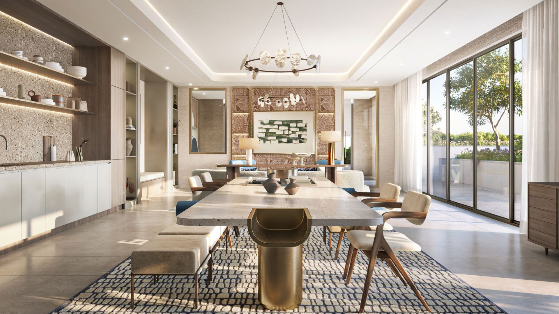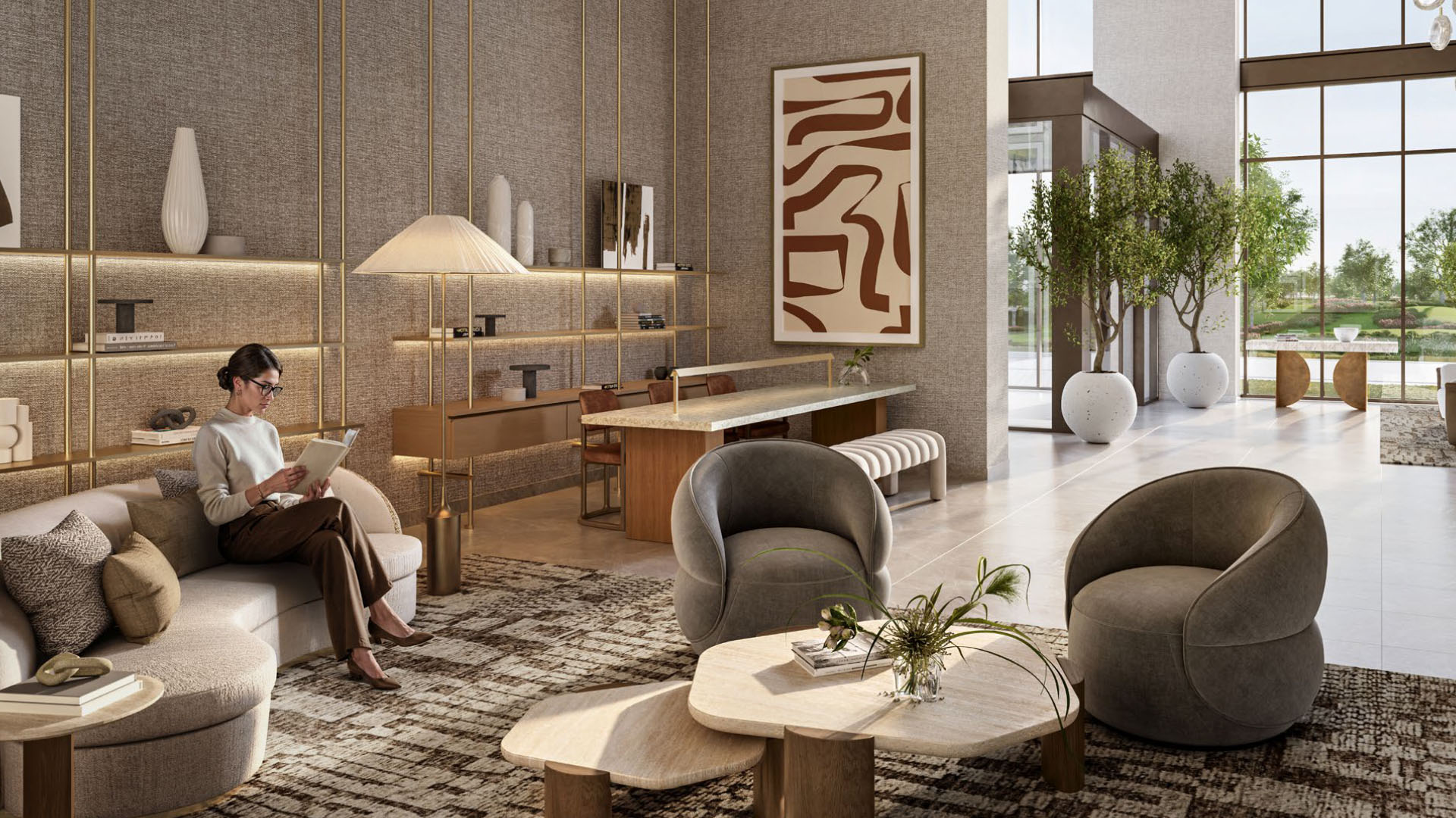 The homes range from one-bedroom apartments right up to three-bedroom townhouses. Everything’s open-plan, which means light pours in and the space feels bigger than it actually is. The design leans into warm woods, natural stone, and muted tones — nothing flashy, just well thought out. You’re looking at one-bedrooms starting around 788 sq ft, two-bedrooms from about 1,158 sq ft, three-bedrooms hitting roughly 1,649 sq ft, and townhouses offering around 2,651 sq ft. Price-wise, it starts from approximately AED 1.27 million and stretches to around AED 5.03 million depending on what you go for.