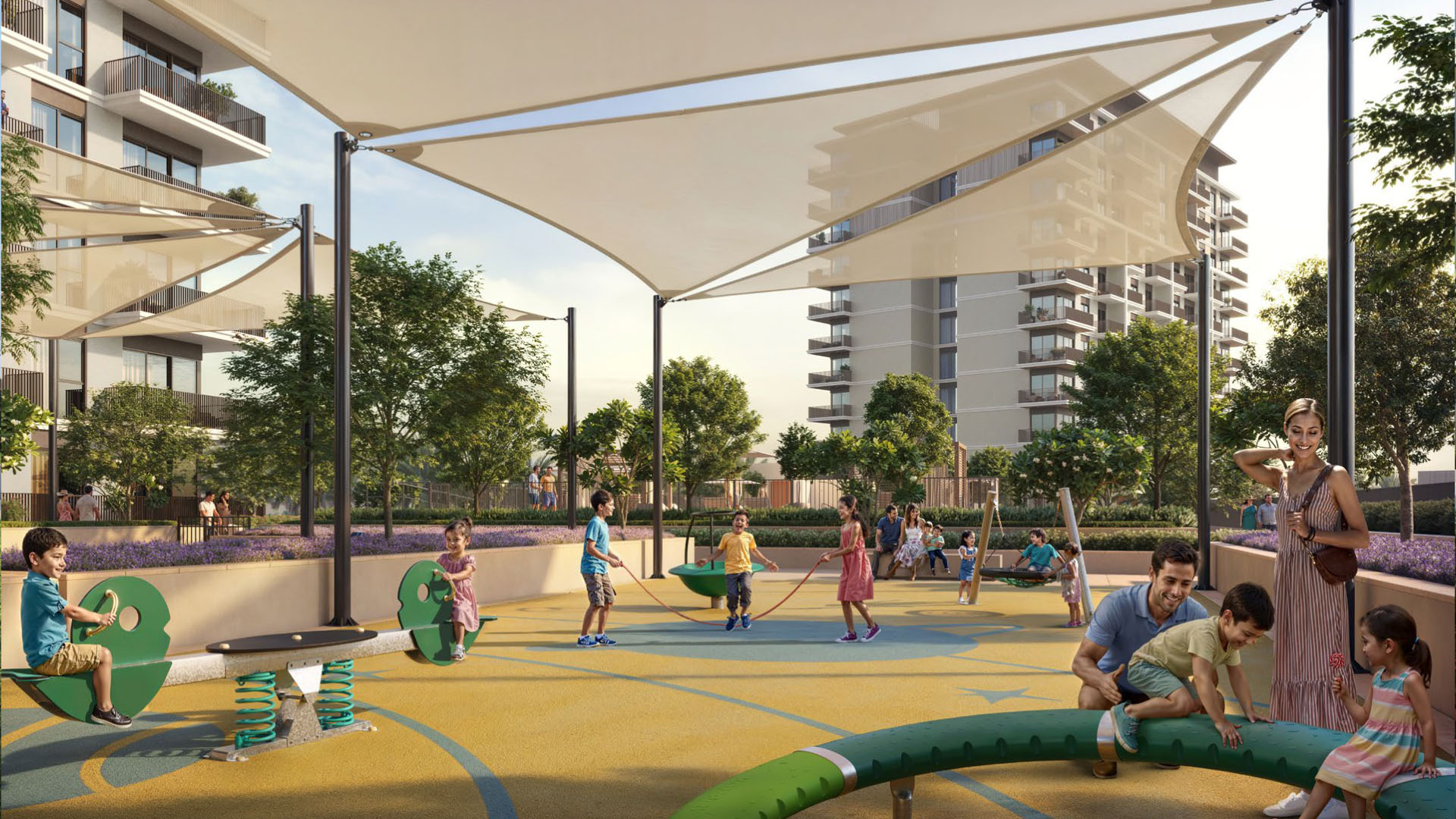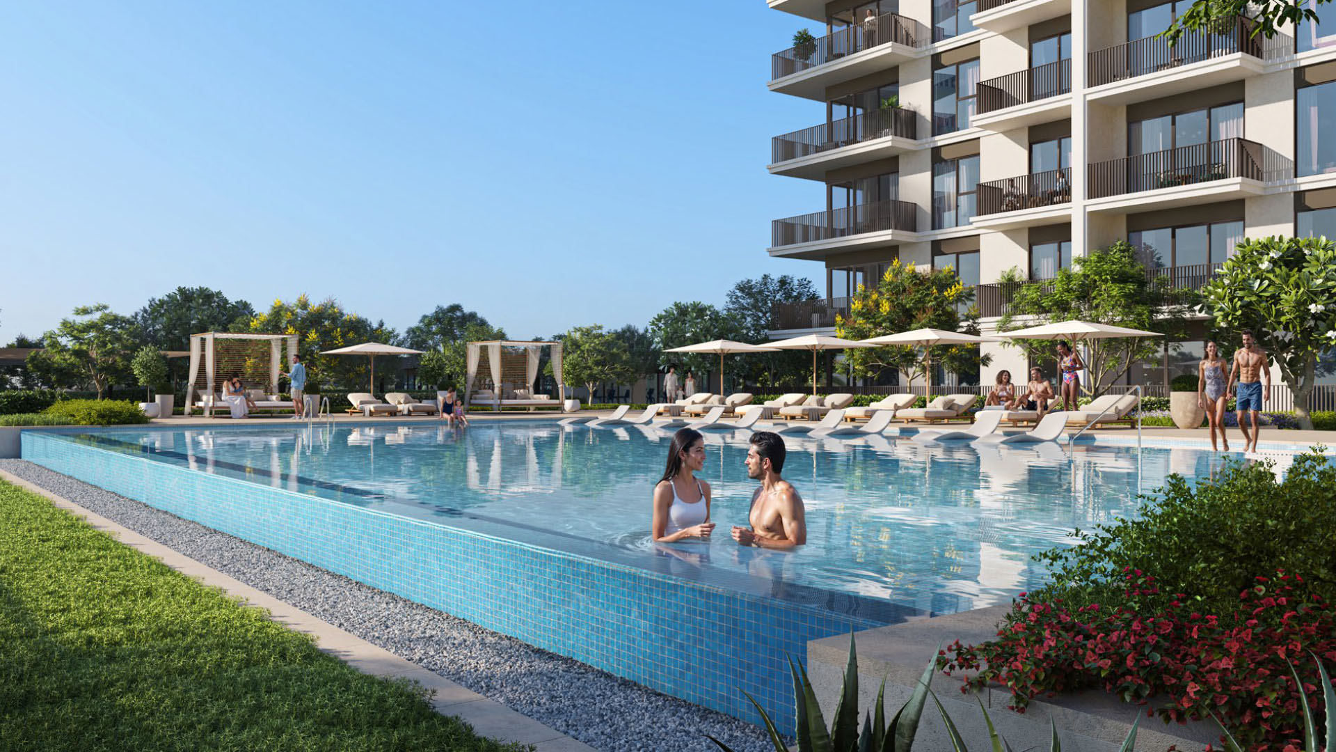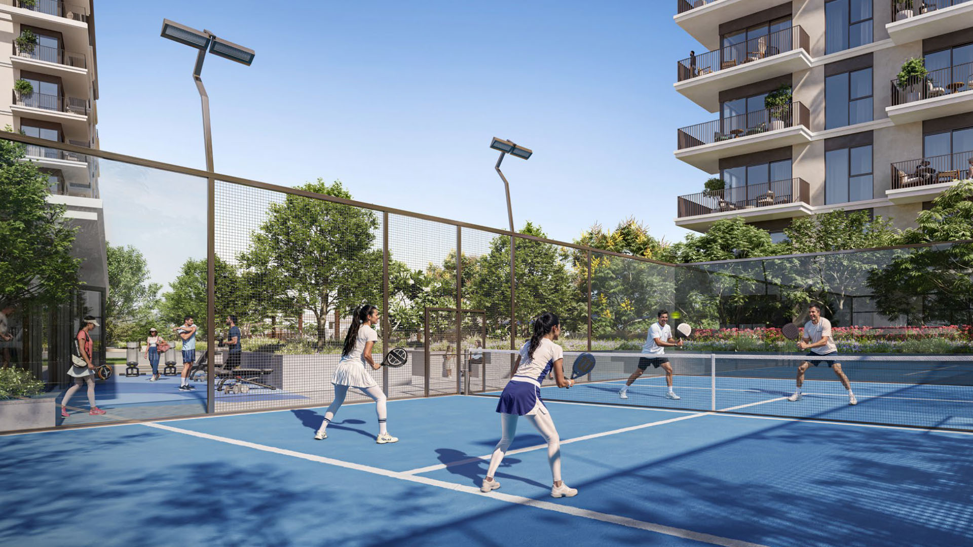 What you get outside is just as important as what’s inside. There are pools (separate ones for kids and adults), BBQ areas for when you want to host, yoga spaces indoors and out, jogging tracks, outdoor gyms, padel courts, and play areas for the little ones. The whole community is designed around actually using the outdoor space, not just looking at it.