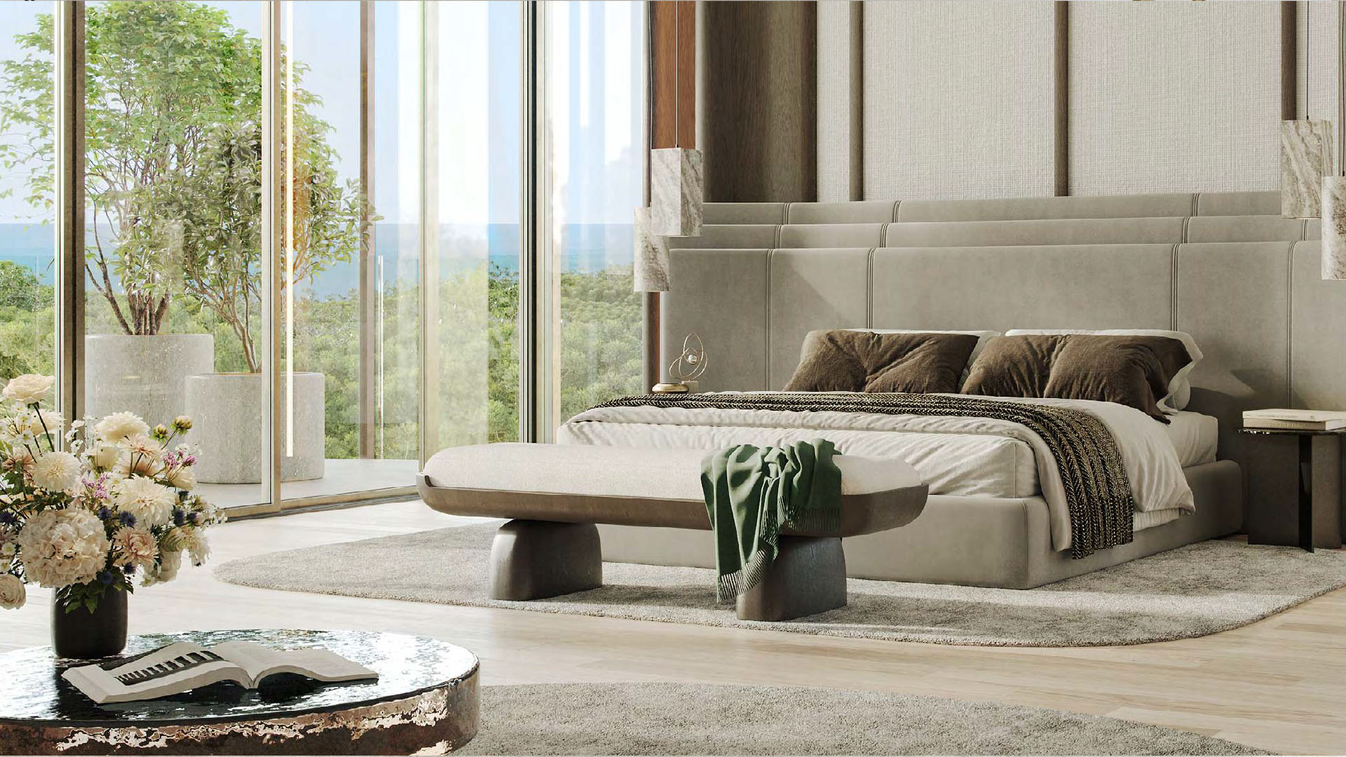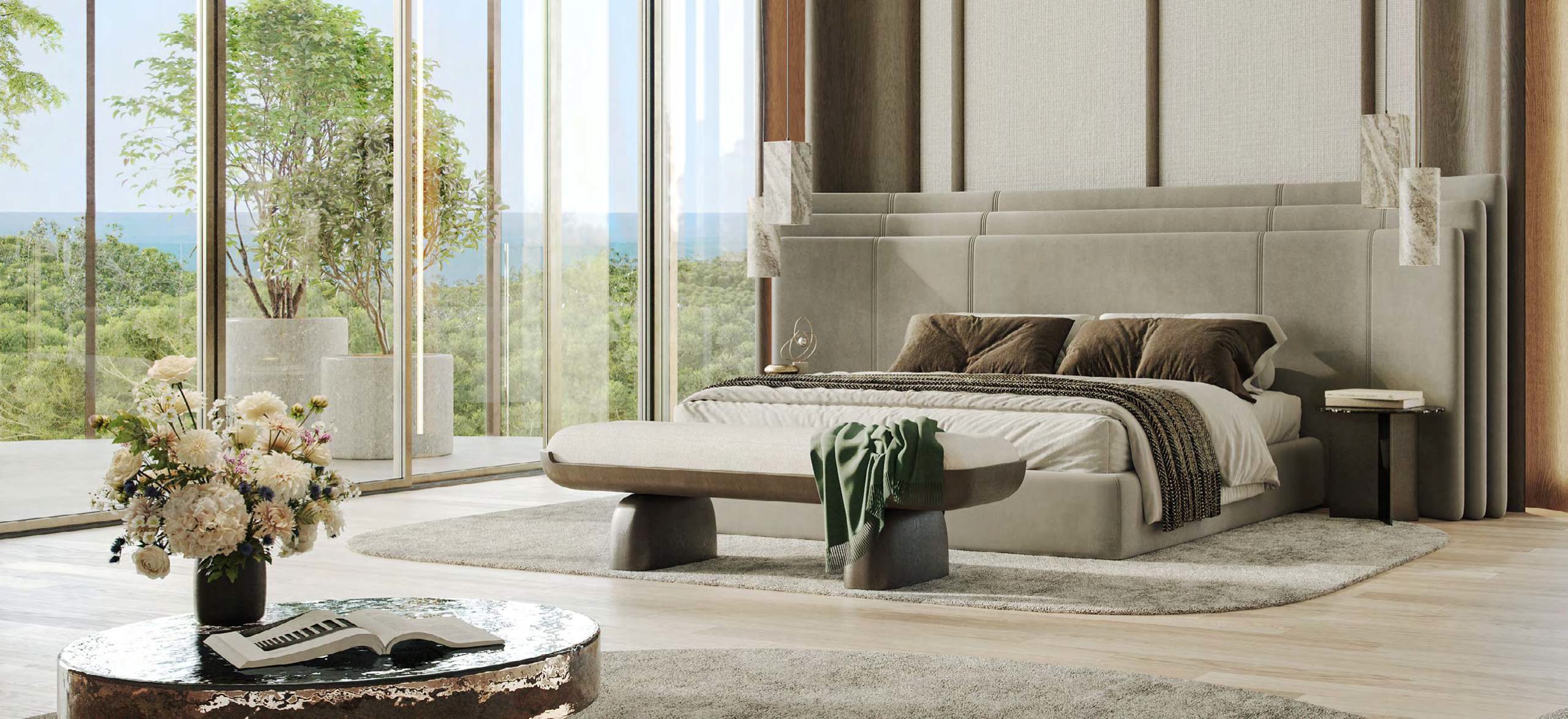 The residences are designed to feel intuitive and unforced. From one- and two-bedroom apartments to expansive three-bedroom homes, layouts prioritize openness and ease. Natural light moves freely through floor-to-ceiling glazing, while terraces extend living spaces outward, creating a gentle connection between indoors and the surrounding landscape