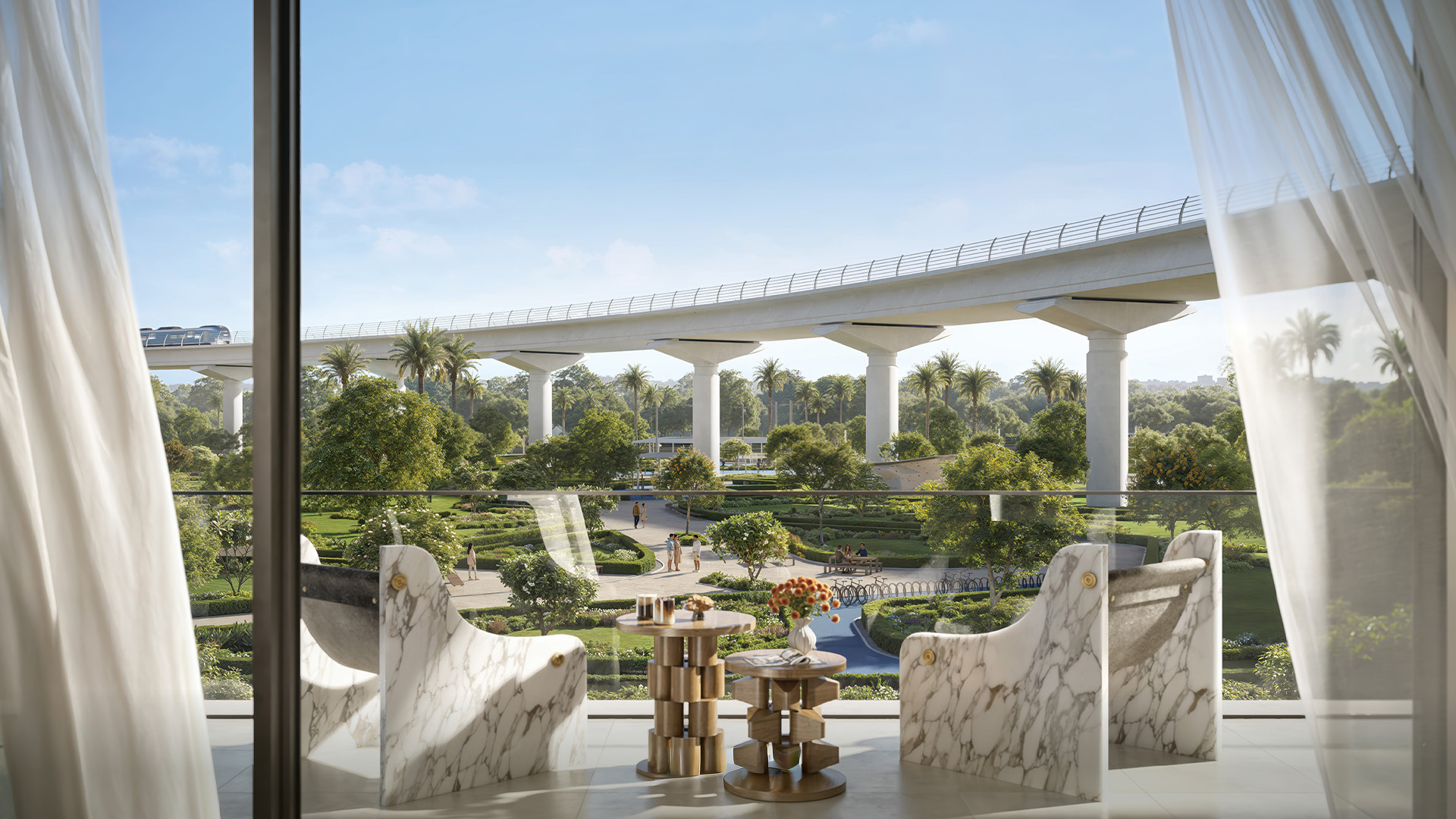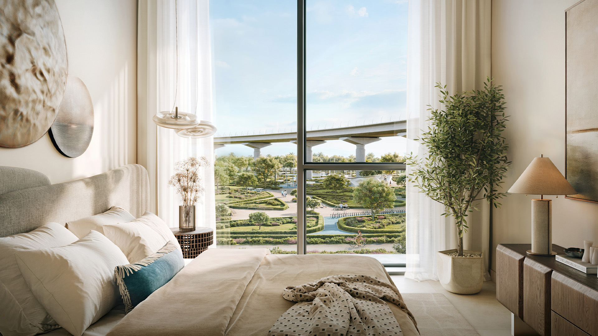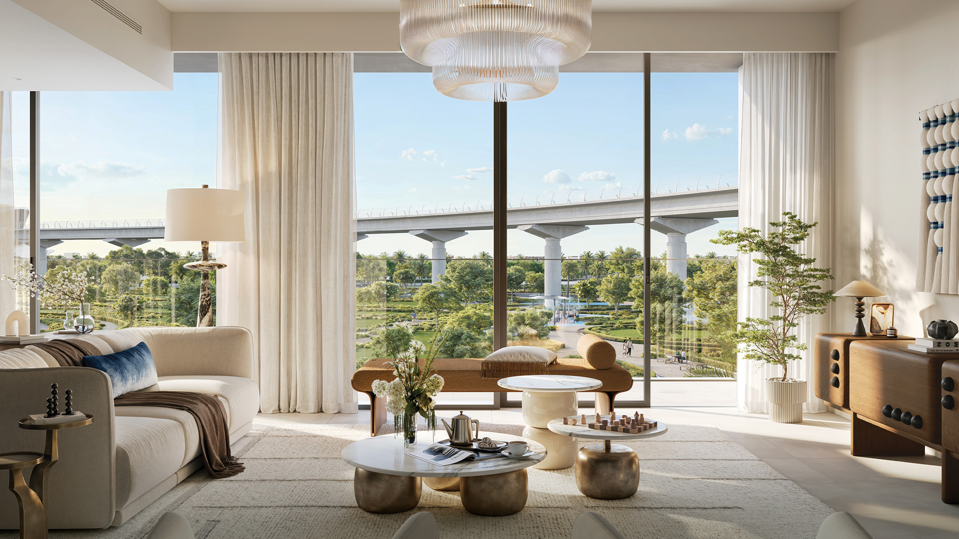 The tower features a curated collection of 1, 2, and 3-bedroom branded residences, designed as elegant yet highly functional homes rather than conventional apartments. Interiors are inspired by a modern, nature-led lens, combining clean architectural lines with warm textures, refined finishes, and abundant natural light. High ceilings and expansive glazing enhance the sense of openness, while private balconies frame views across lush parklands, the surrounding skyline, and nearby golf course landscapes. Each layout is carefully planned to support comfort, flow, and flexibility, making the homes equally suited for end users and long-term investors.
