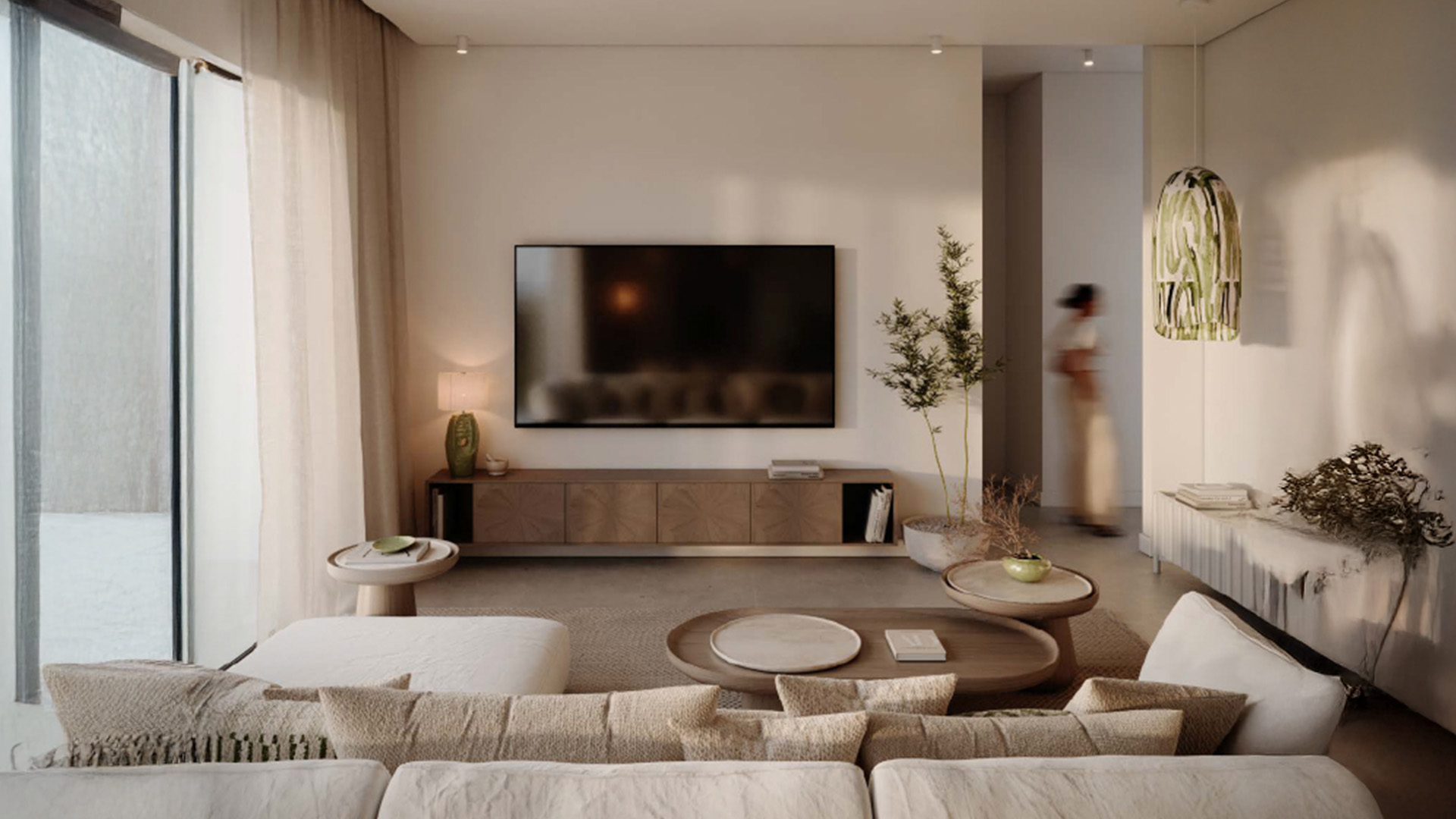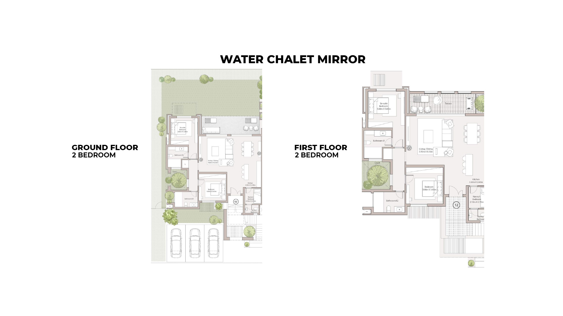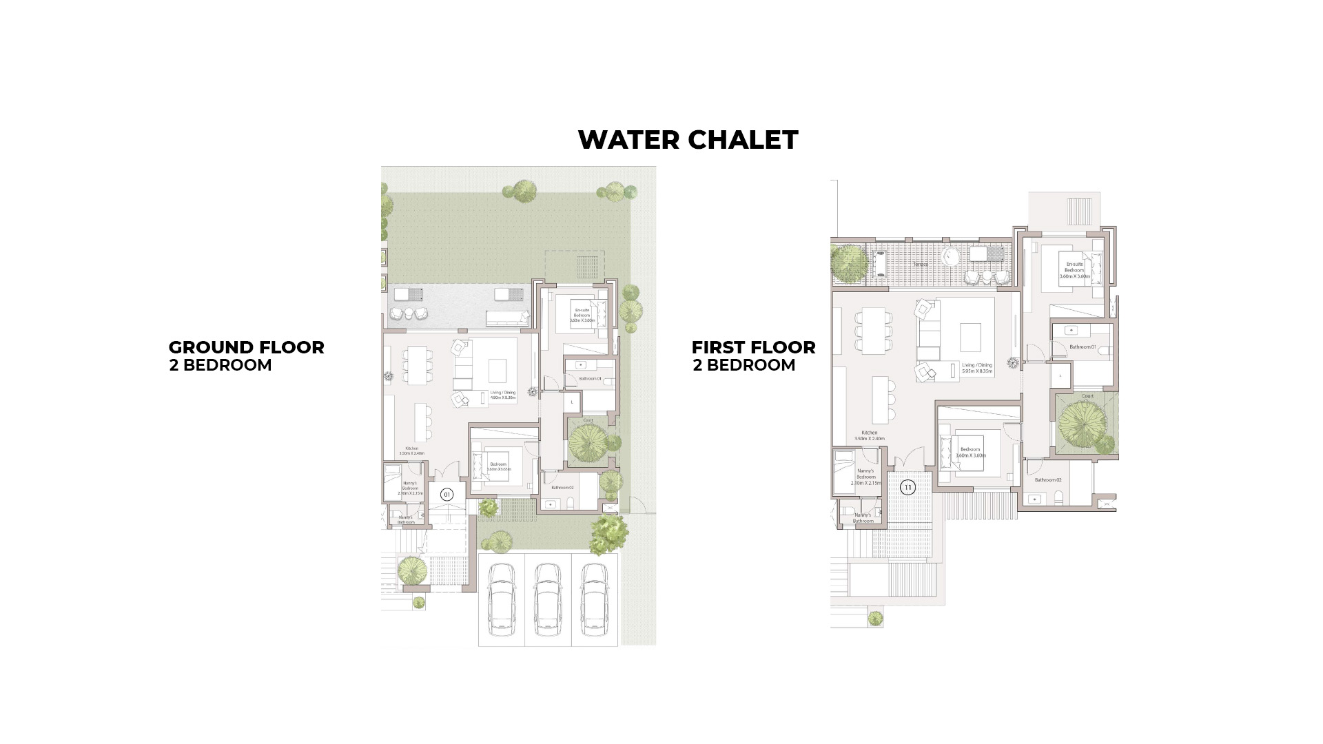 Designed by global architectural firm DLR, the master plan integrates cascading elevations with lush landscapes and over 800 meters of shoreline. The chalets are crafted with a focus on simplicity and comfort. each building hosts only four homes with private entrances, expansive gardens or terraces, maids’ rooms, and curated interior finishes. Two- and three-bedroom options are available with floor plans ranging from 130 to 182 sqm.