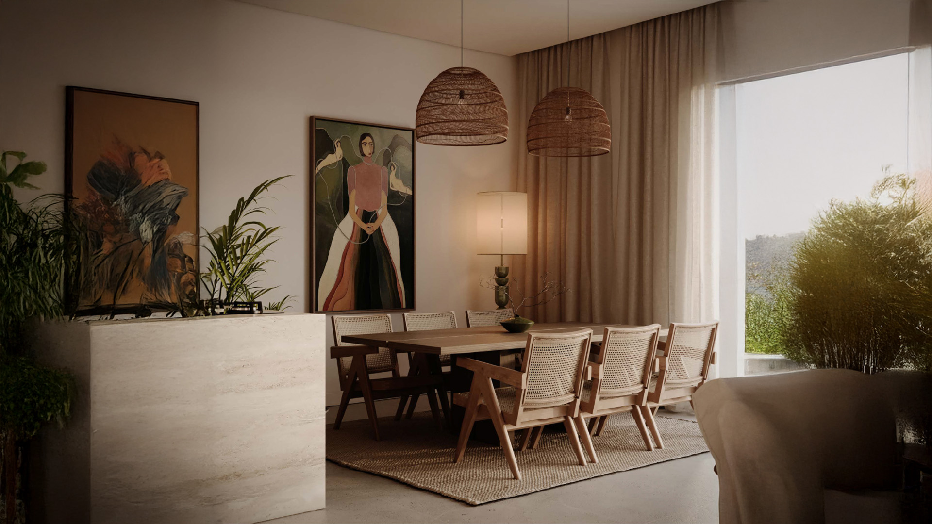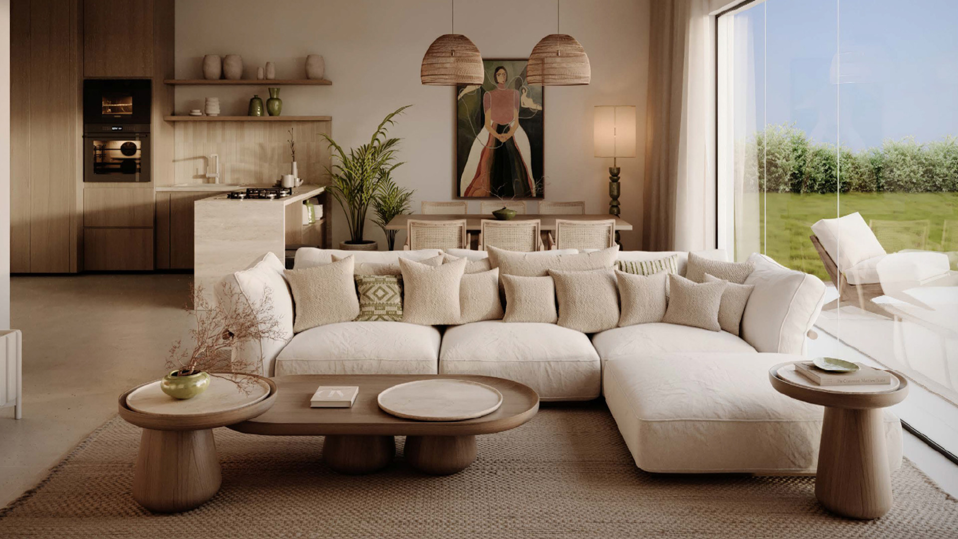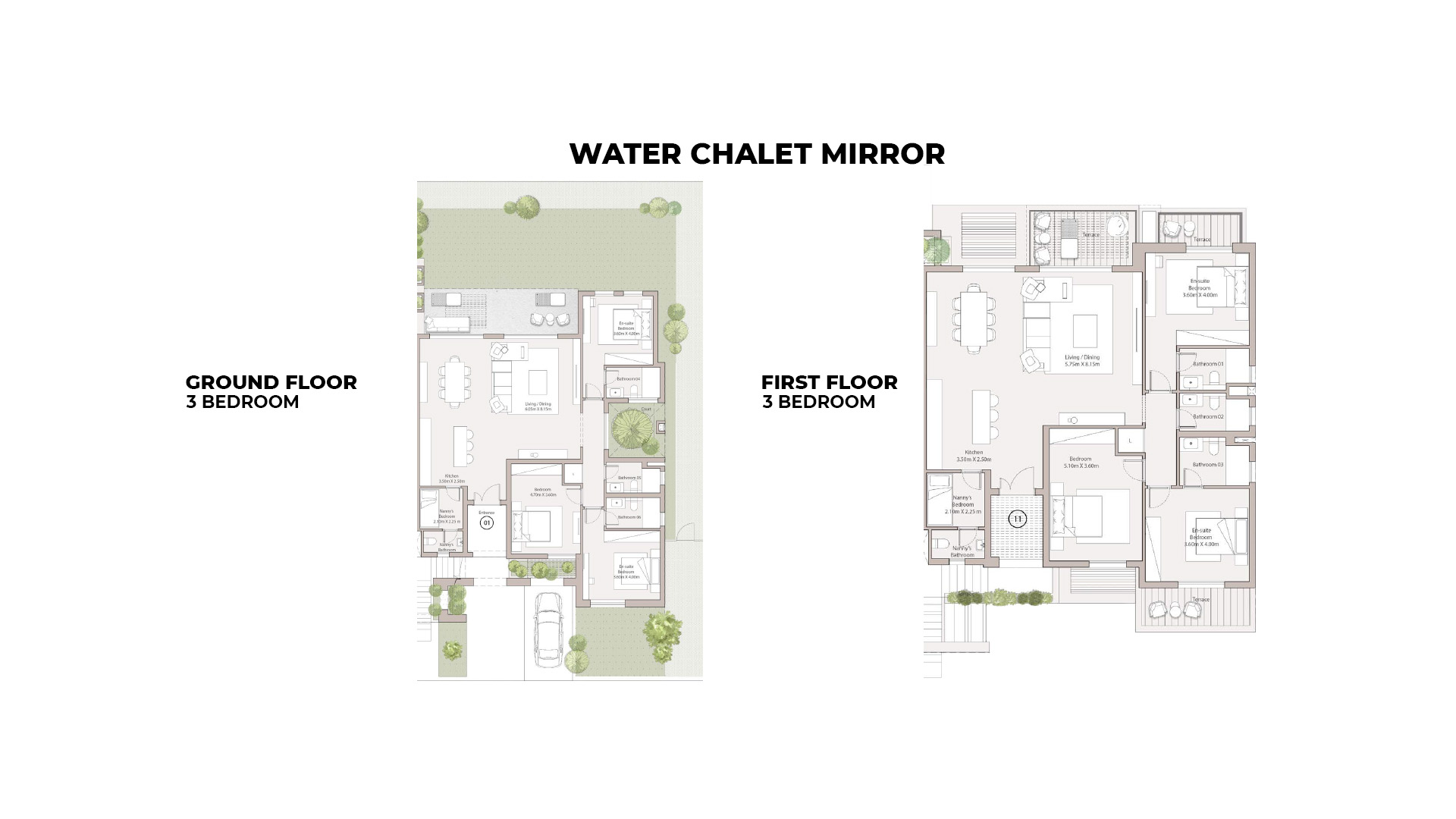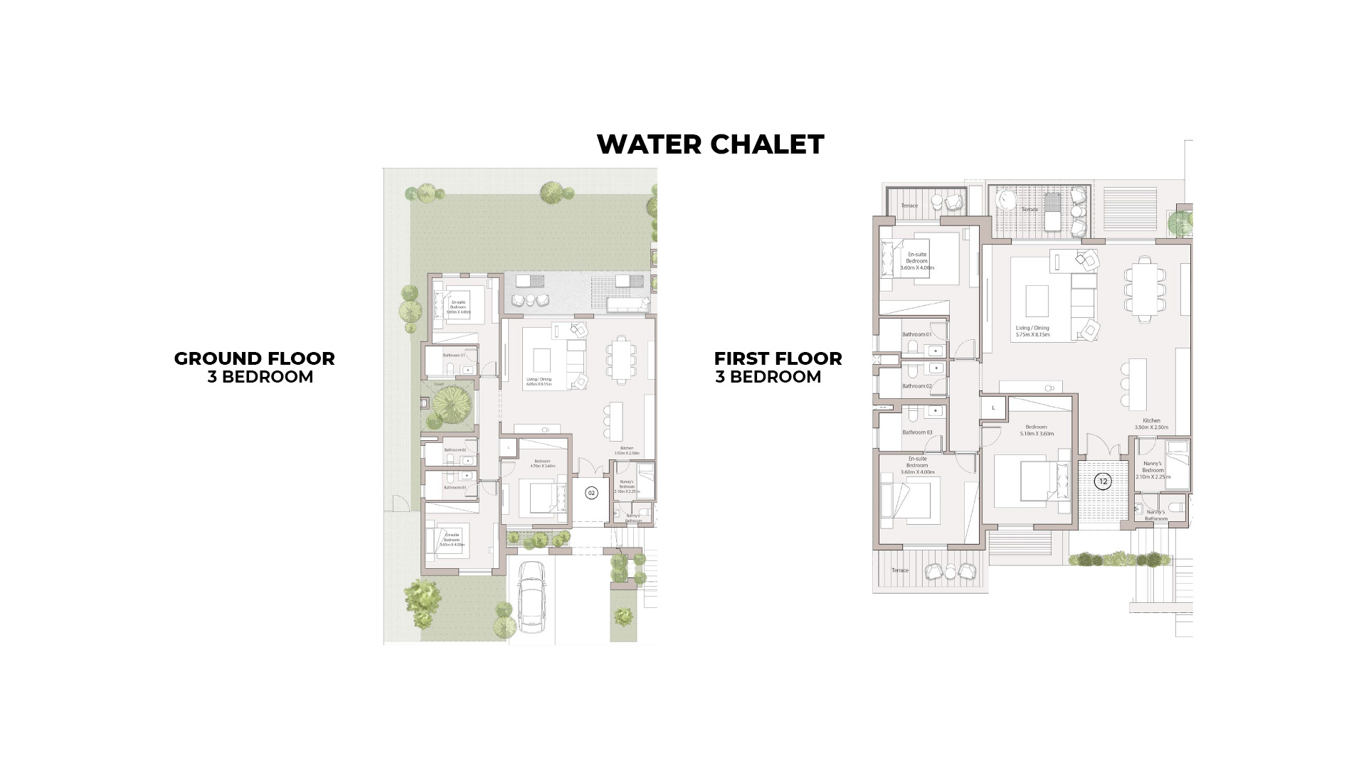 Designed by global architectural firm DLR, the master plan integrates cascading elevations with lush landscapes and over 800 meters of shoreline. The chalets are crafted with a focus on simplicity and comfort. each building hosts only four homes with private entrances, expansive gardens or terraces, maids’ rooms, and curated interior finishes. Two- and three-bedroom options are available with floor plans ranging from 130 to 182 sqm.