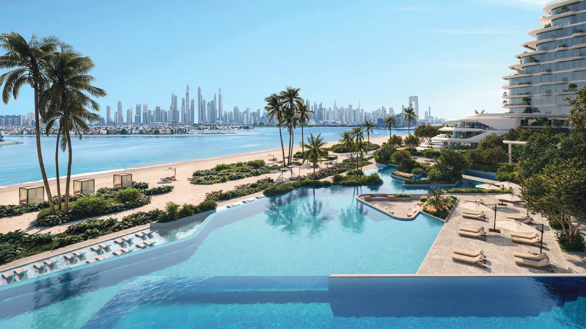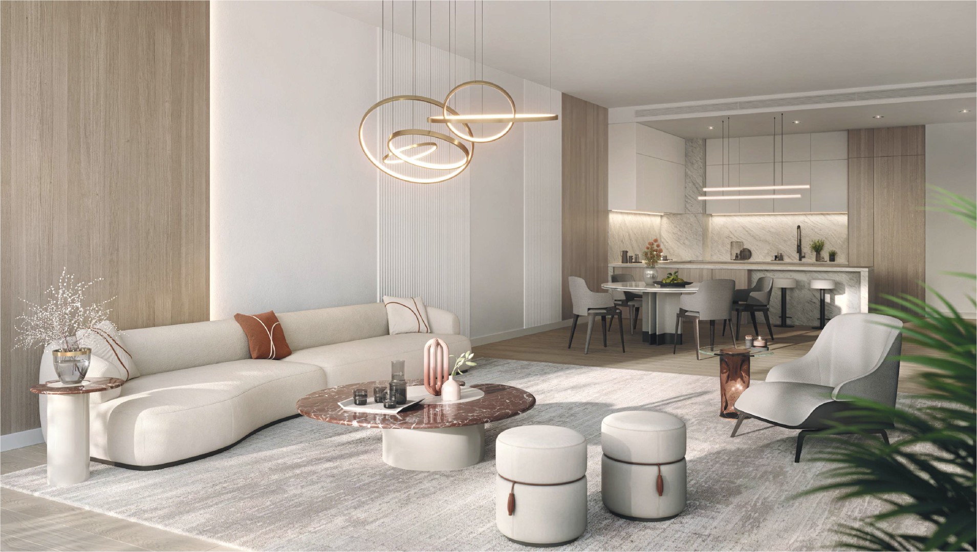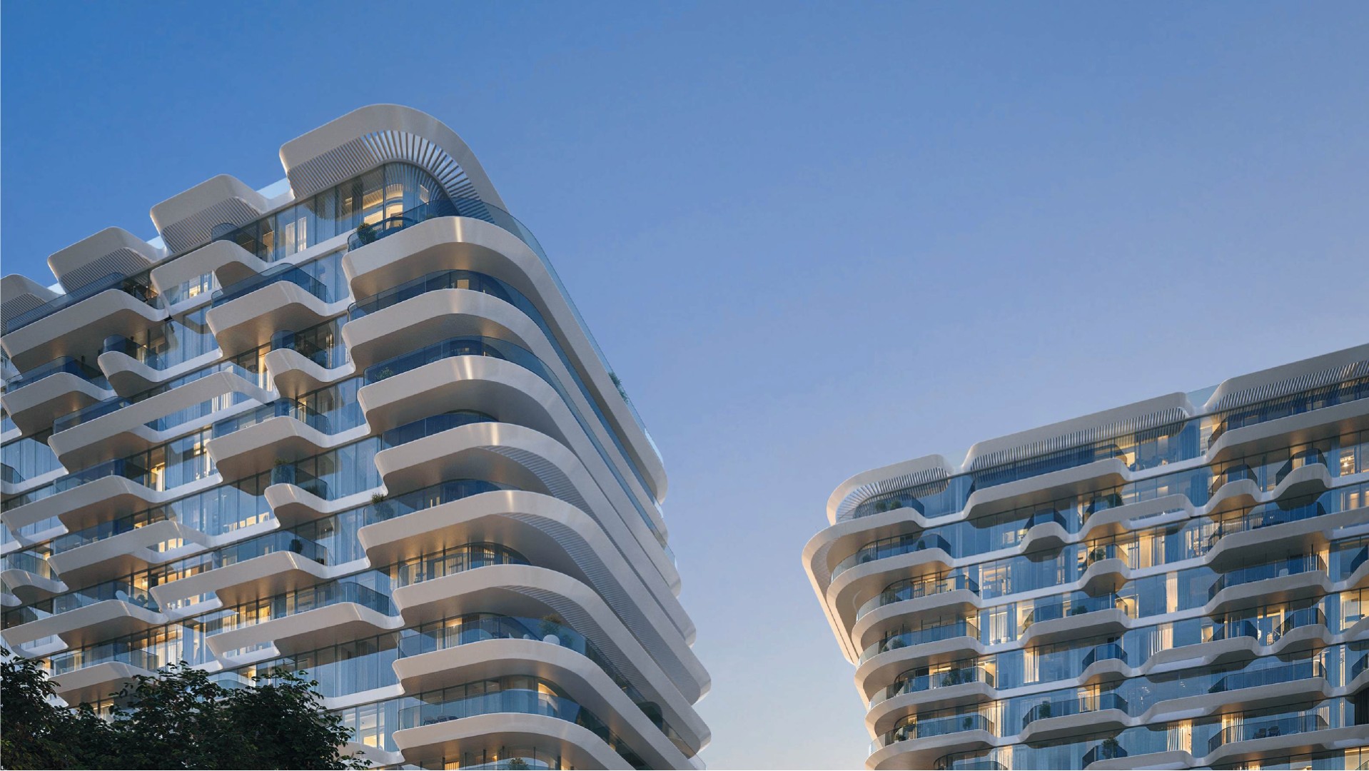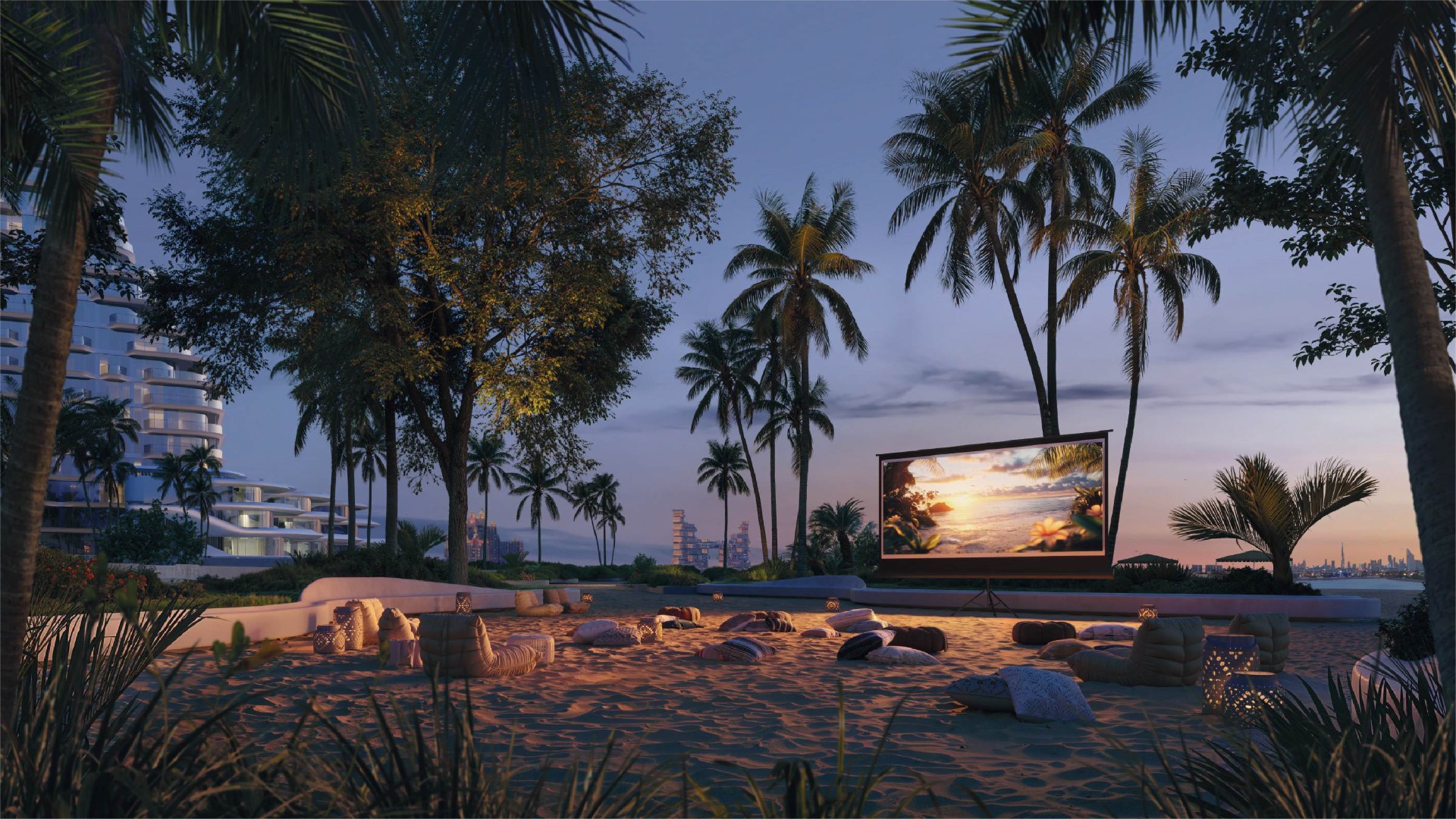 Designed to maximize light and views, the architecture features soft coastal colors and expansive glass, creating a seamless blend of indoor and outdoor spaces. Shaded walkways and lush landscaping enhance the environment. The homes offer spacious open living areas that extend onto large terraces, with elegant finishes and practical kitchens. Penthouse and beach mansion options provide larger terraces for entertaining.
