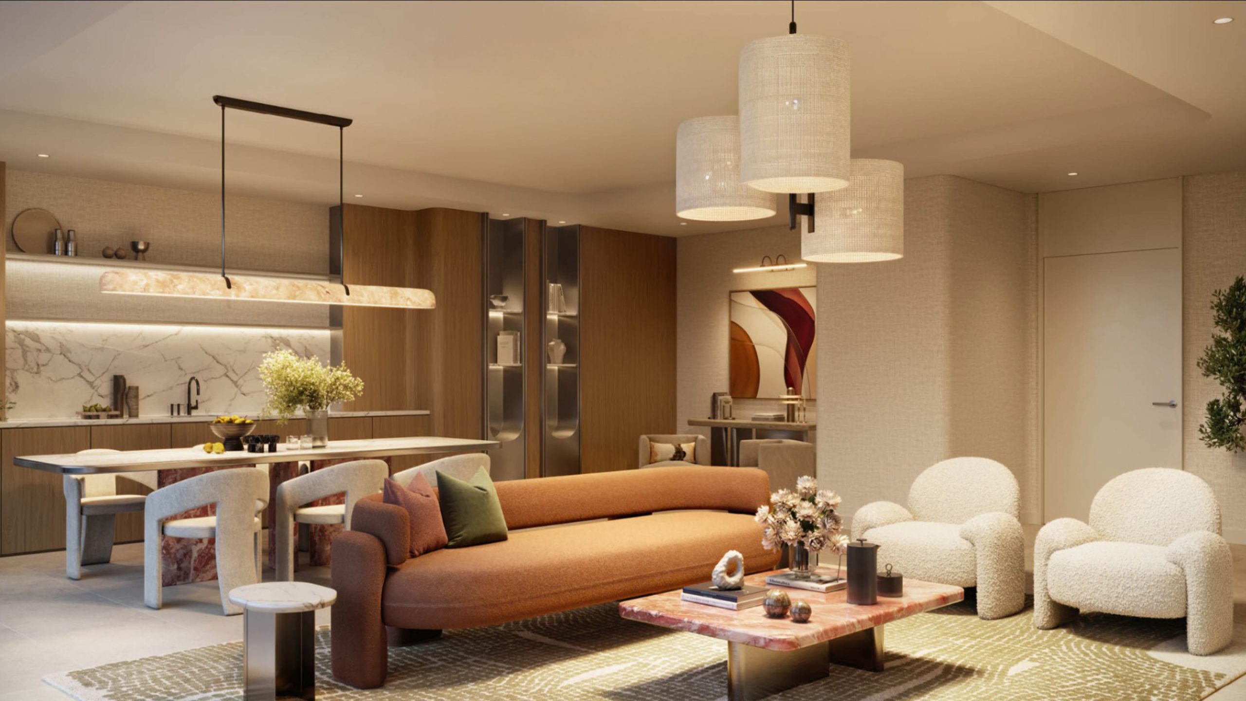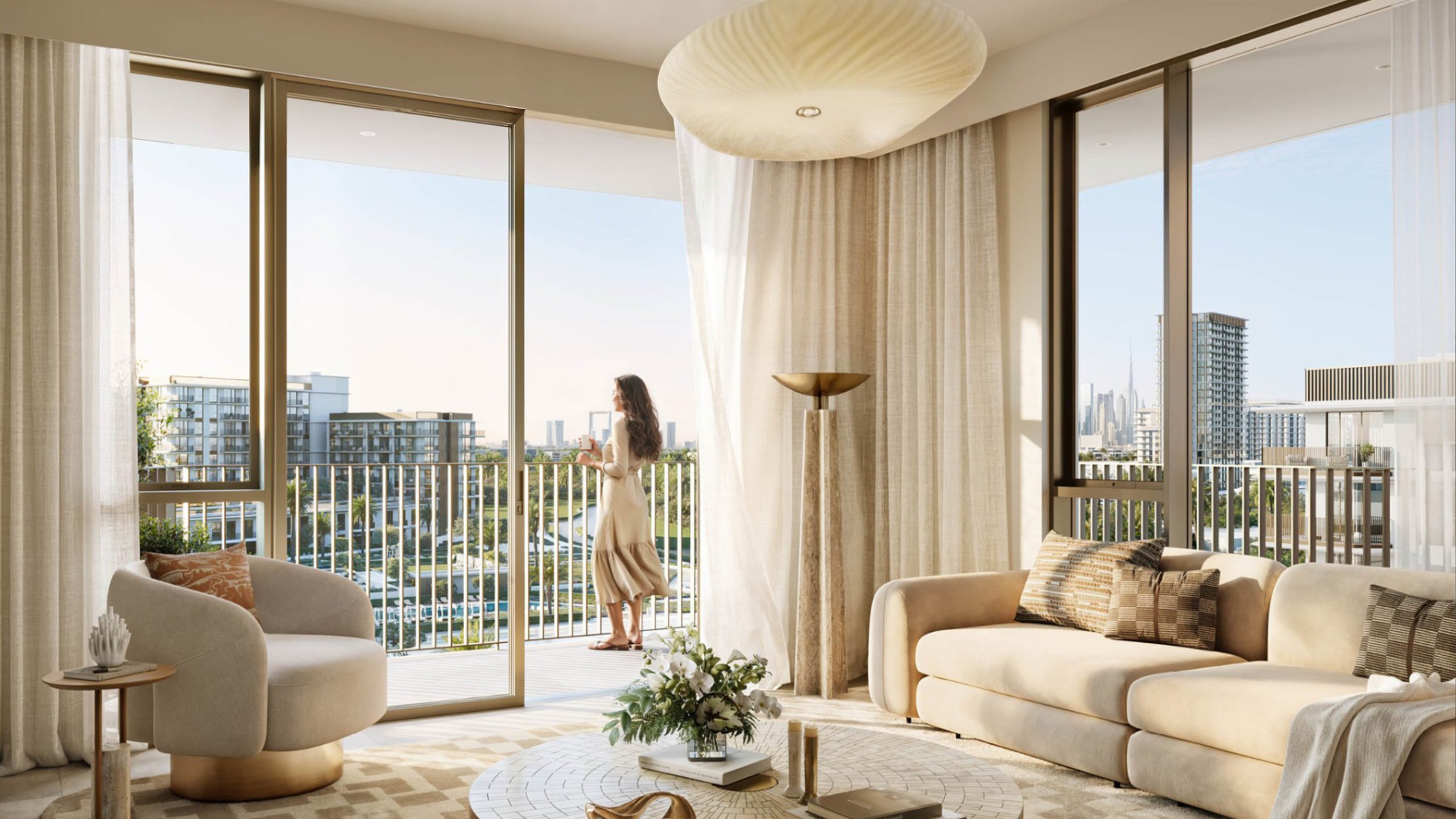 The residences at Sera 2 include a carefully curated collection of 1, 2, and 3-bedroom apartments, alongside a limited number of spacious 3-bedroom townhouses. Each home is designed with a resort-inspired philosophy, where comfort, elegance, and functionality come together naturally. Interiors are defined by soft natural palettes, warm textures, and refined finishes that enhance a sense of calm and sophistication. Expansive glazing allows natural light to flow through living spaces, while generous balconies open onto views of serene water gardens, leisure pools, and lush landscaped greenery.