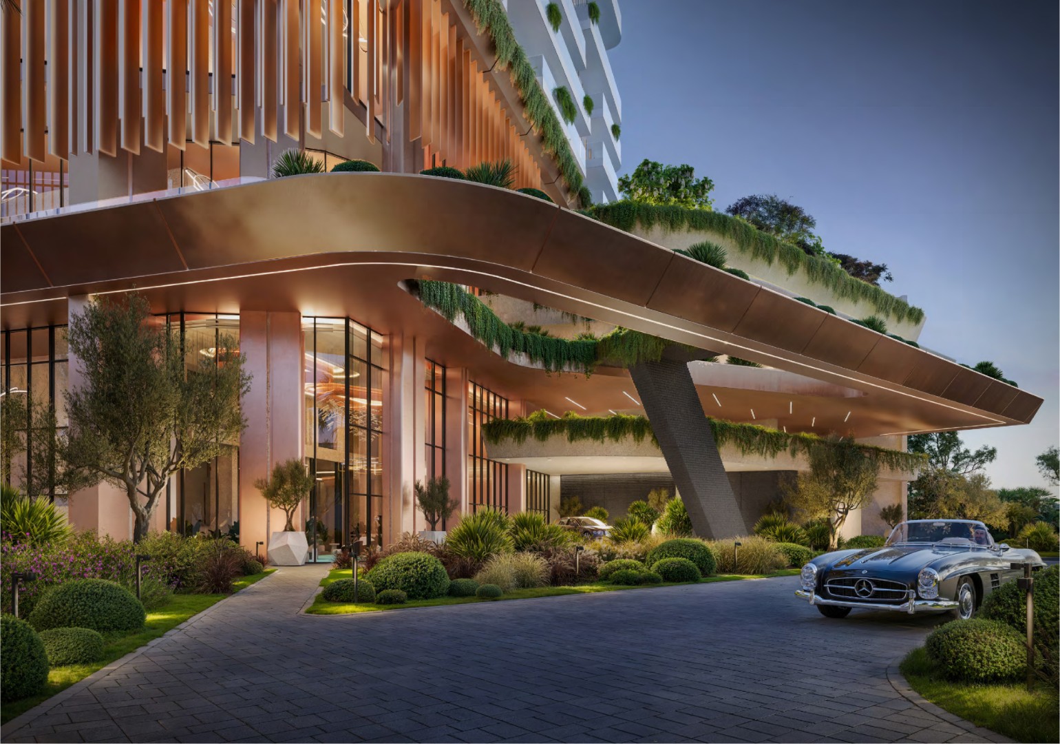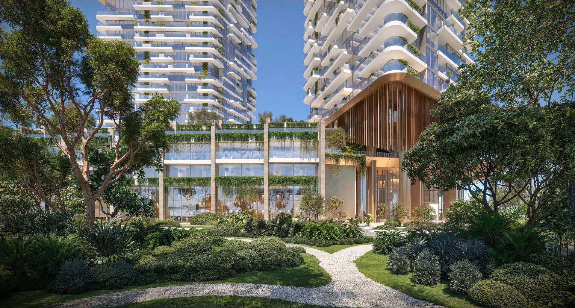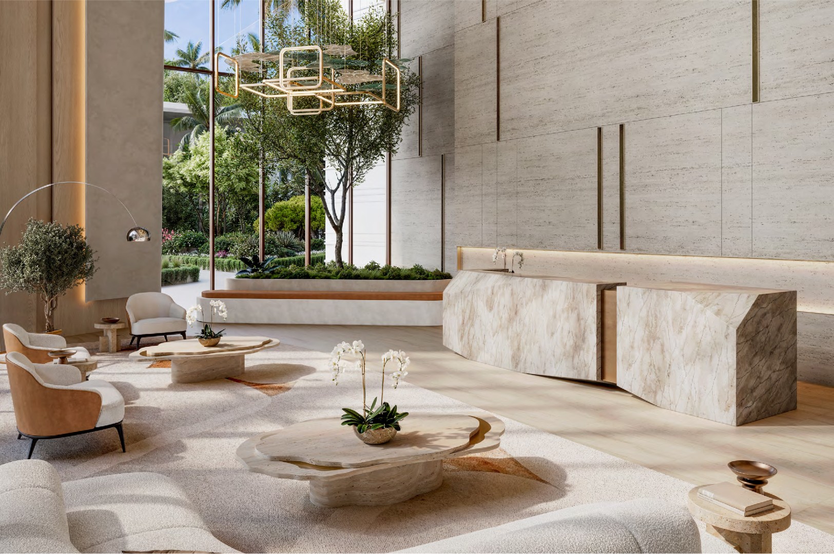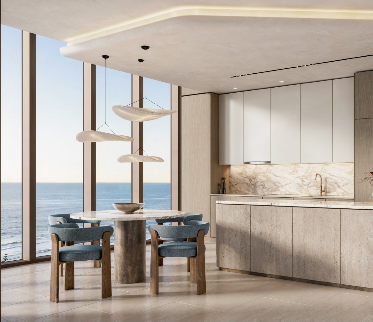 The contemporary coastal design showcases 44 and 31-story sail-inspired towers with glass and bronze accents, along with spacious, light-filled interiors. Homes include one to three-bedroom apartments, podium chalets, four-bedroom duplexes, and penthouses, all designed for privacy and style.