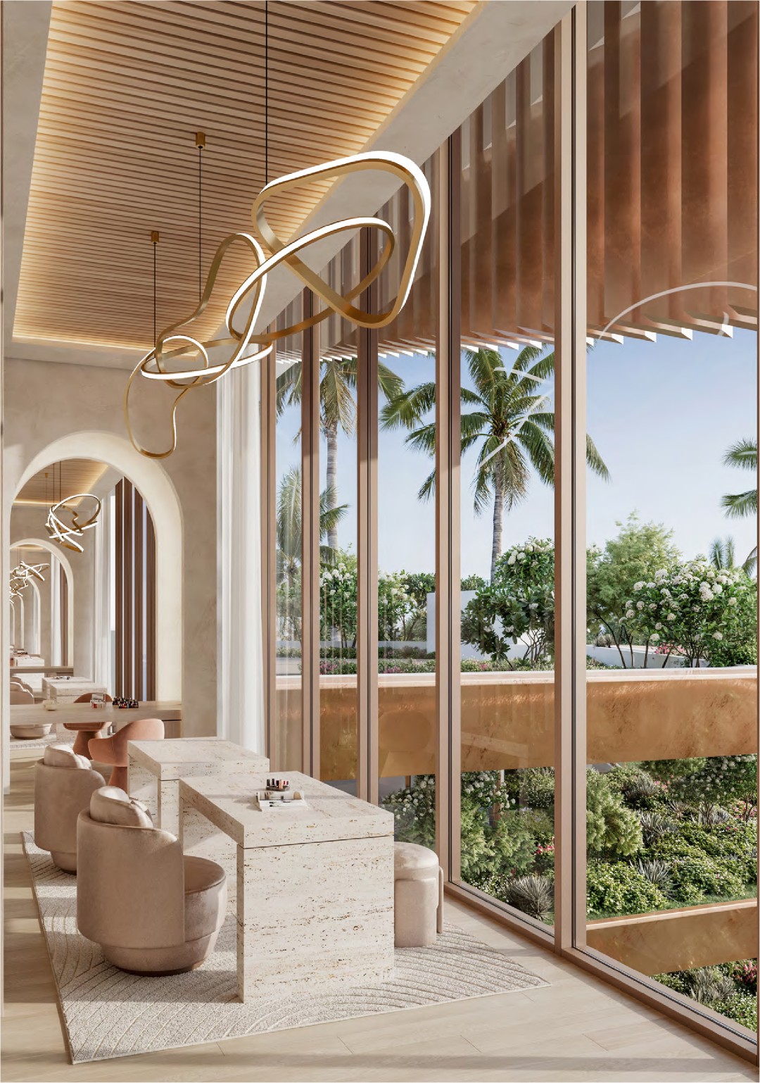 Amenities include an infinity pool, sun deck, private cinema, library, spa, wellness studio, and fitness center. Residents can enjoy yoga sessions, children’s play areas, and a landscaped park for relaxation. Concierge services, valet parking, and 24/7 security ensure a smooth and convenient lifestyle.