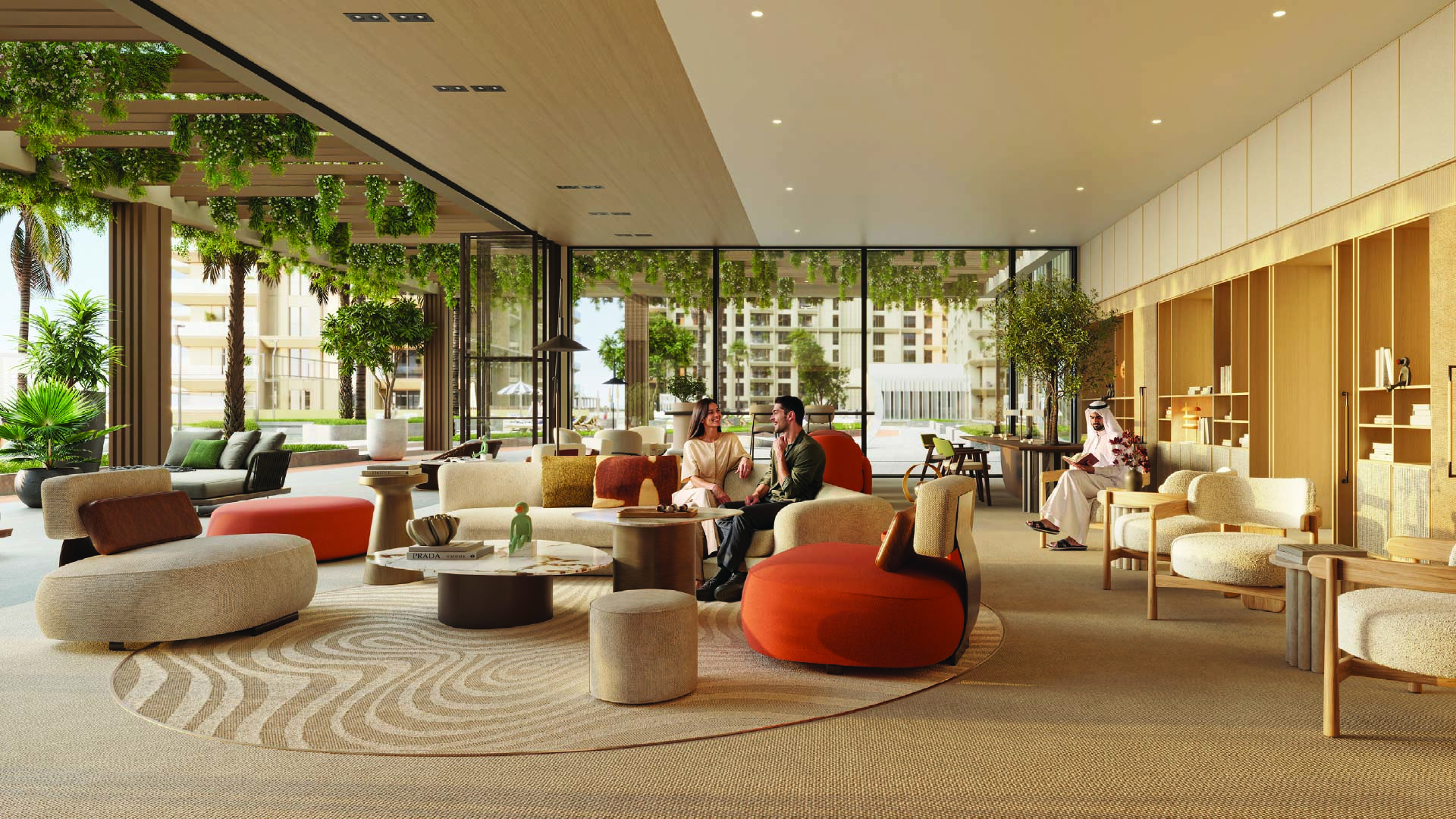 The community lifestyle emphasizes routine and connection. Residents enjoy a modern pool, a children’s pool, gardens, shaded walkways, play areas, and sports courts. Amenities include a fitness studio, residents’ lounge, co-working spaces, a nursery, and a retail plaza for convenience.